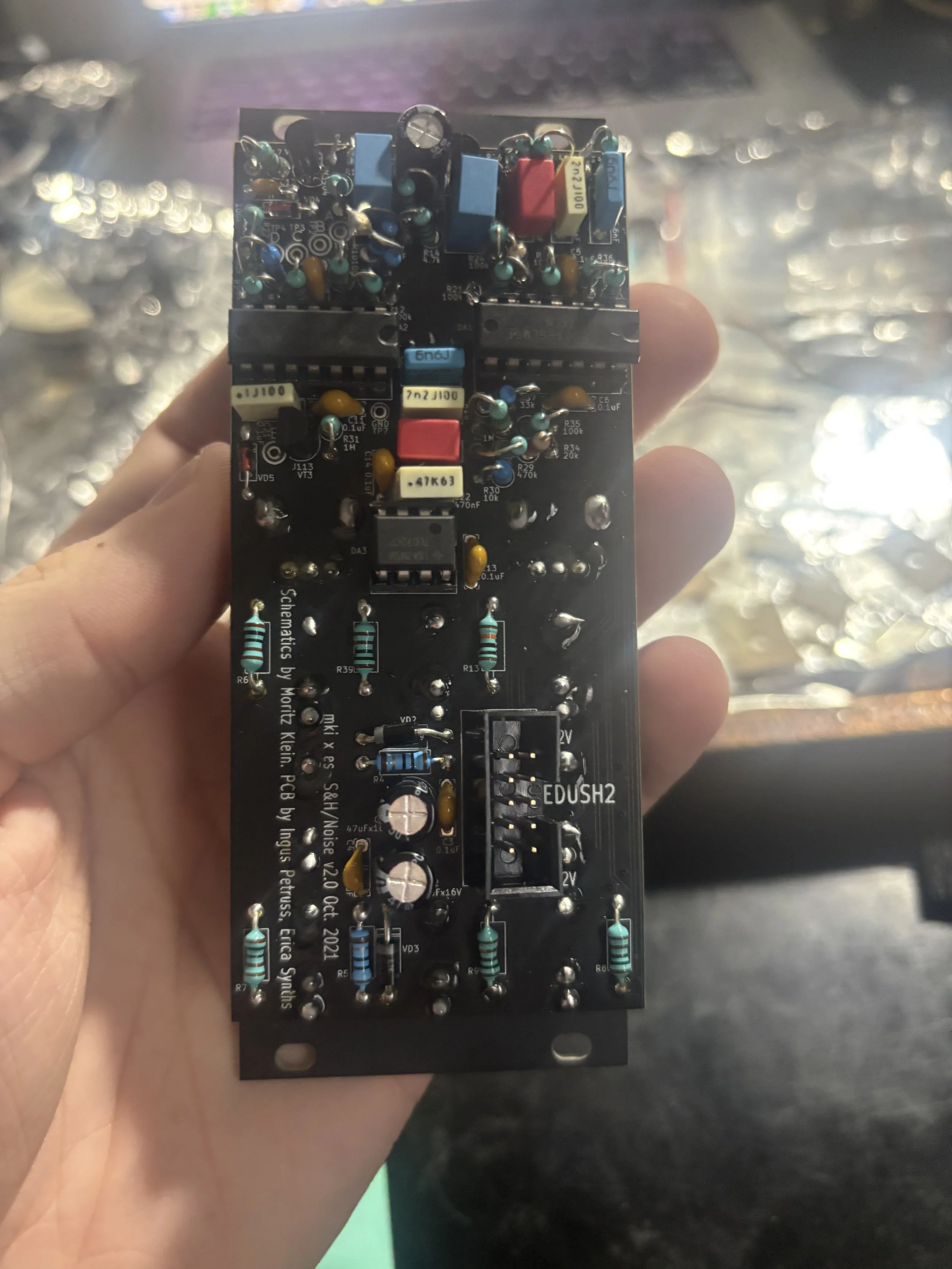 Currently developing a fully analog drum voice module for Eurorack systems, aimed at producing original percussion sounds that break away from conventional 808-style voices. The circuit features user-adjustable parameters like pitch, decay, and tone, with a focus on expressive, performance-ready sound design.